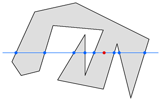 Второй заключается в подсчете, сколько раз луч, выпущенный из \(P\), пересекает ребра многоугольника.