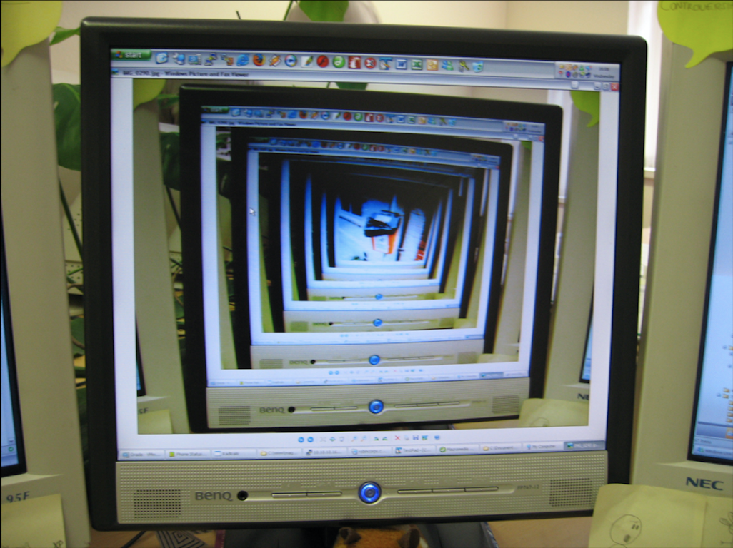 Например, при демонстрации экрана на камеру в прямом времени. Ведь тогда камера снимает экран, на котором видно экран, на котором видно экран, на котором видно экран и так далее. Это пример бесконечной рекурсии.